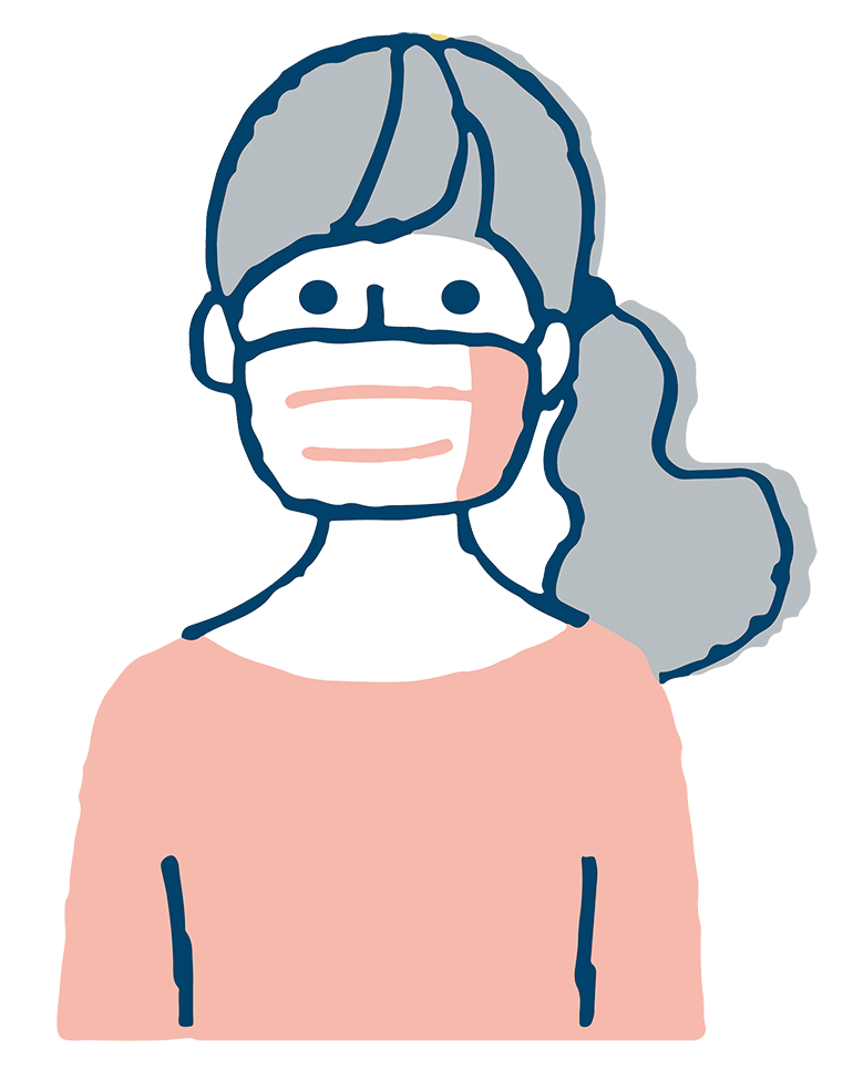 ・人混みではマスクを着用し、あごまで覆うようにする。